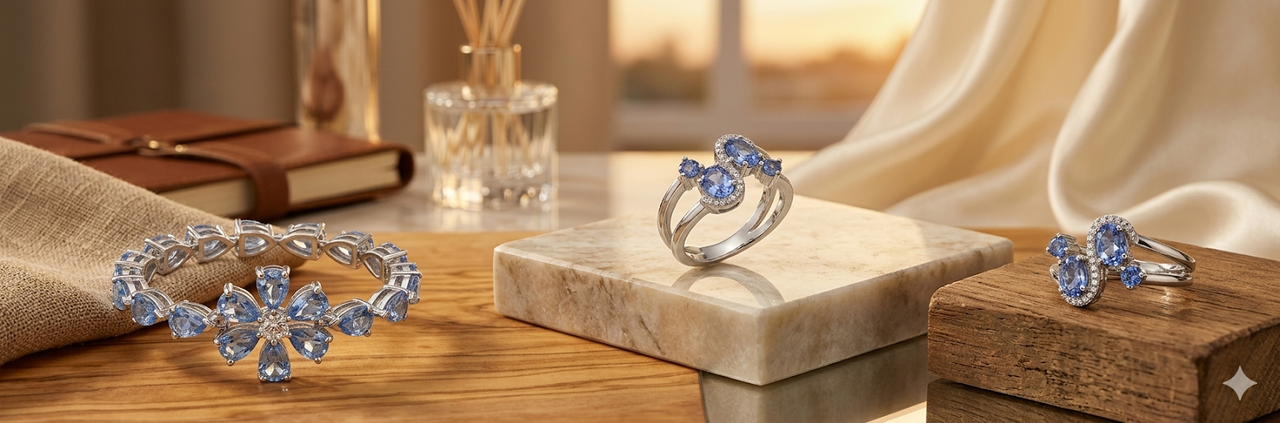 925Chic Genuine Natural Tanzanite Band Ring in Rhodium 925 Sterling Silver
